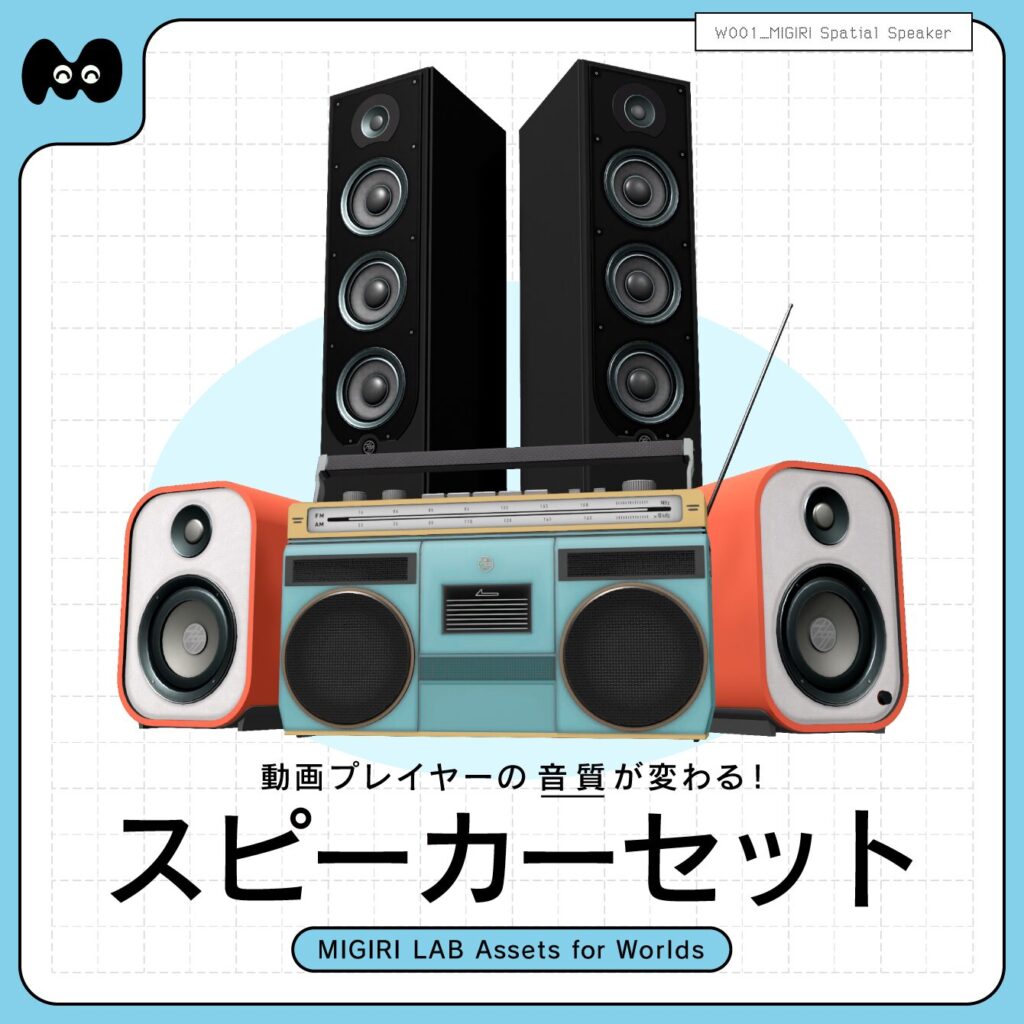 11月3日(月)の正午12:00より第一弾の商品として、”音質が変わるギミックつきスピーカー3Dモデル「MIGIRI Spatial Speaker」”を販売予定です。