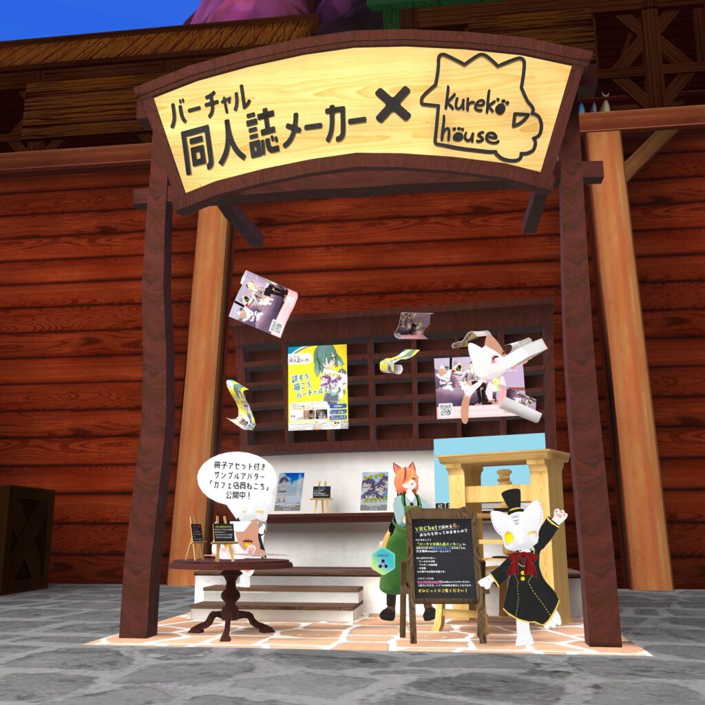 『バーチャル同人誌メーカー』は、12月21日まで開催中の『バーチャルマーケット2025 Winter』の一般ワールド『龍の都の交易所 巨鰐アギトクス』にも出展中。実際にアセットをお試しできる各種サンプルが用意されています。