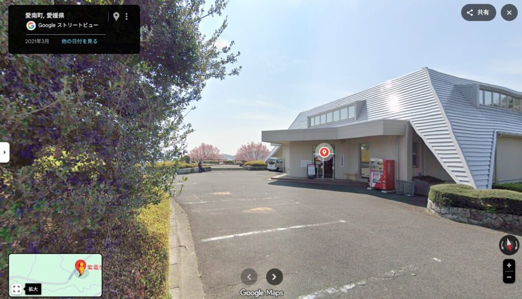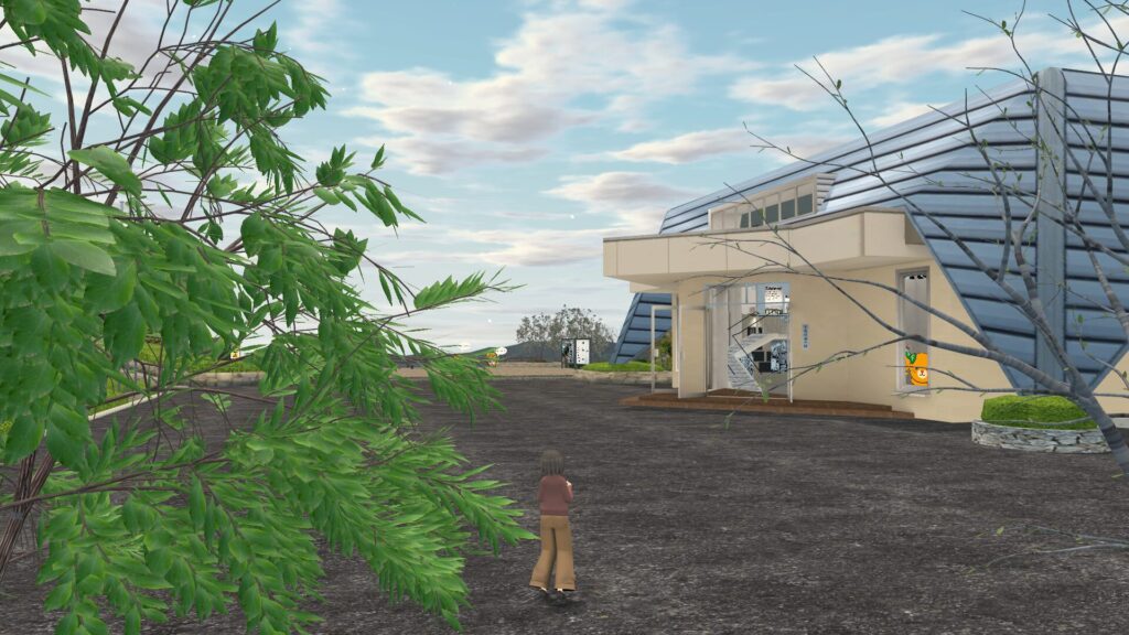 ワールドは大きく分けて、入場して右手に展示館、左手に広場という構成です。「実際の展示館を参考にした空間設計」になっているとのことで、実物が気になってついGoogleマップで旅をしてしまいました。