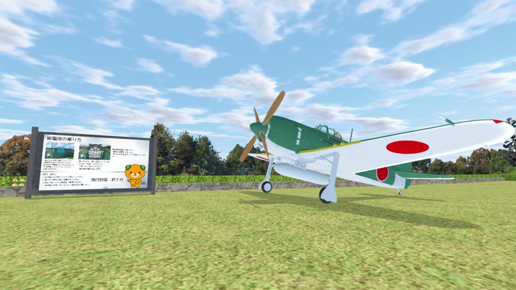 それに加え、本来は柵が設置されていて近づけない紫電改を間近で見ることができたり、紫電改での遊覧飛行ギミックまで用意されていたりと、VRChatならではの楽しさもたっぷりです。