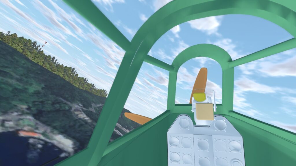 大変恐縮ながら、VR酔いしやすい筆者はデスクトップでの搭乗……!紫電改は速度が優秀な機体だったこともあって、本機もそれなりの速度で飛行・旋回します。