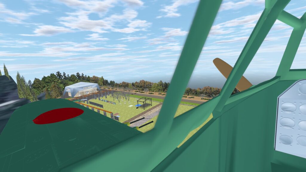さらには、紫電改に乗って遊覧飛行ができるというバーチャルならではのギミックも!本記事では、実際にワールドを訪れた体験レポートをお届けします。