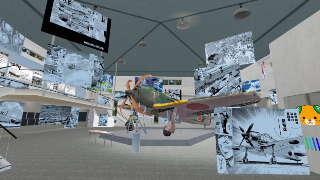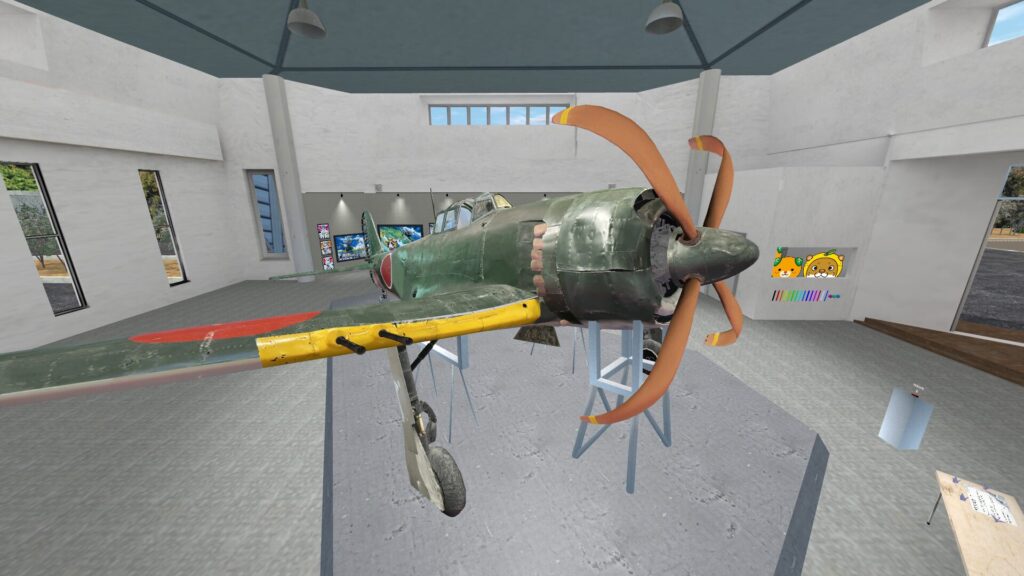 続いて、VRChat上にオープンしたバーチャル紫電改展示館の様子です。