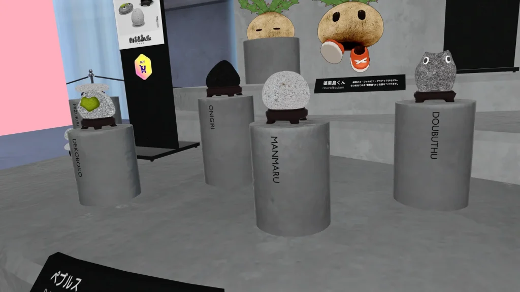 質感や立体感が凄く良い。アバター『Pebbbles.(ペブルス) 』がちょこんと展示されているのも可愛いです。