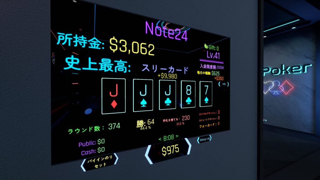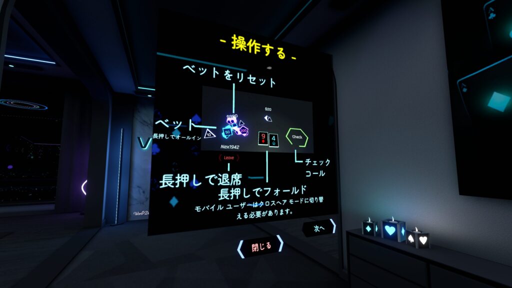 VRChatで本格的な「テキサス・ホールデム(Texas hold’em)」が遊べる!そんなワールドをご紹介!