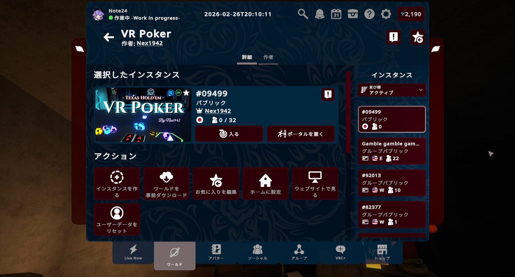 VRChatワールド2026年3月15日VRChatで本格的なポーカーを楽しもう!「VR Poker」【VRChatワールド紹介】