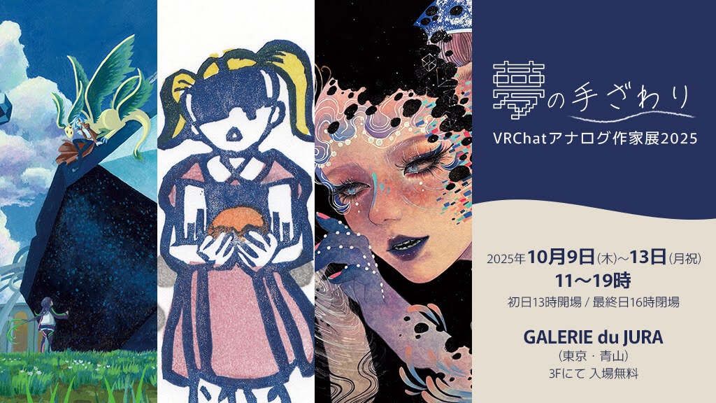2025年10月9日(木)~13日(月祝)、東京・青山のGALERIE du JURA(ギャラリエ・ジュラ)にて、『夢の手ざわり VRChatアナログ作家展2025』が開催されます。