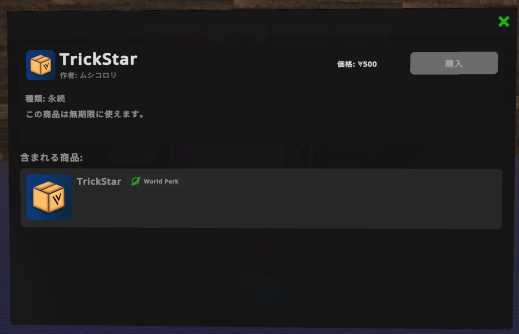 コミュニティやクリエイターへの支援として、ワールド内で使えるアクセサリーや限定機能などを購入できます。