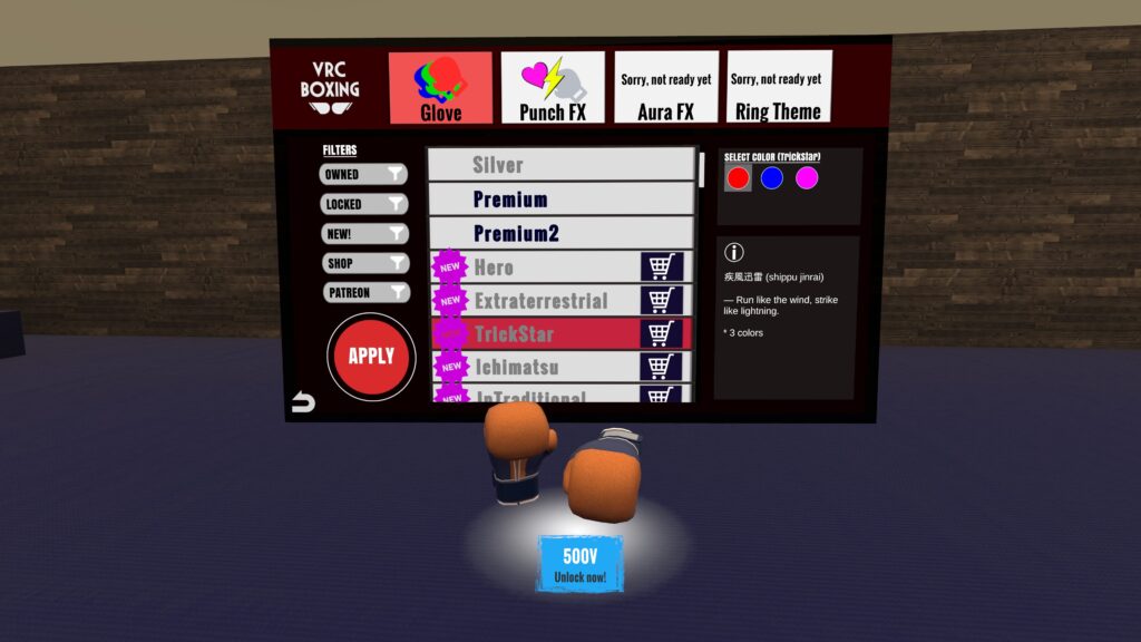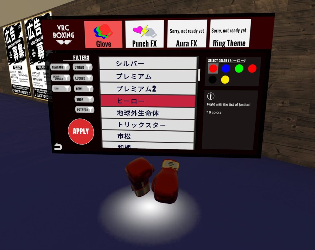 VRChat2025年9月2日【8/30 VRCボクシング大型アップデート】 グローブスキン大量追加!その場でプレビューできるメニュー型UIも新規実装。即購入→即着用可能なアクセシビリティの進化を体験しよう!