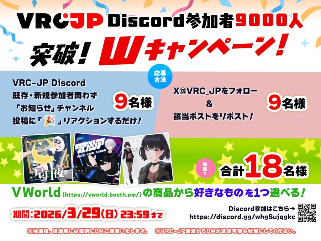 VRC-JP Discord参加者9000人突破!Wキャンペーン実施!合計18名様に抽選で当たる!【寄稿】