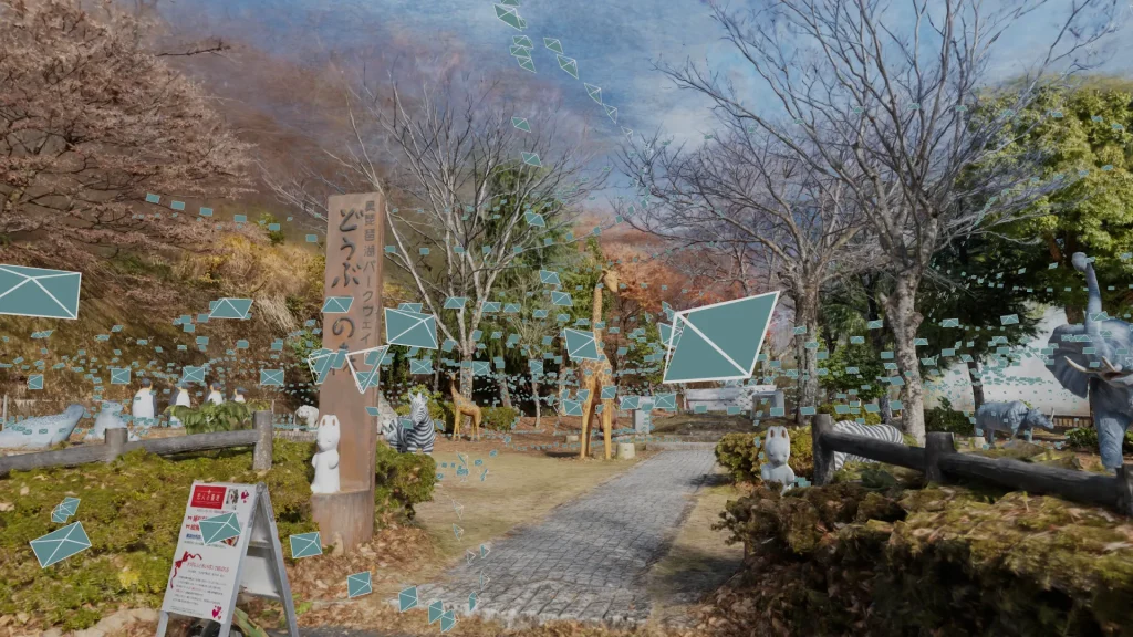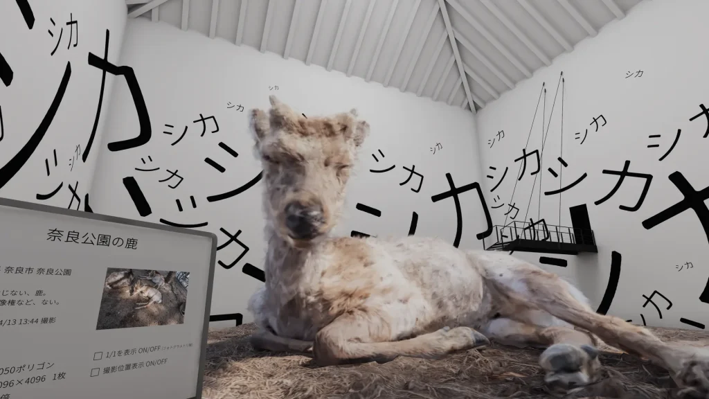 フォトグラメトリとGaussian Splattingの展示がぎっしり詰め込まれた、容量も展示内容もビッグなミュージアム! 展示方法も凝ってて楽しい! どこから撮影したか、撮影時間なども見ることができます。(おしむ)