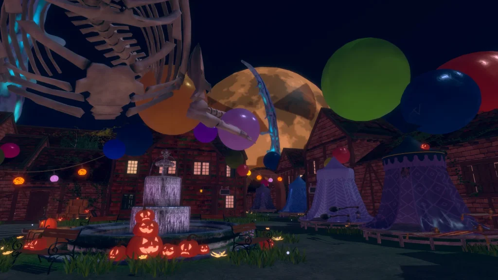 魔女達のバザールが開催!時計や魔女の帽子、杖に魔導書など……様々なお店がならんでいて楽しい!クジラにも乗れます。(おしむ)