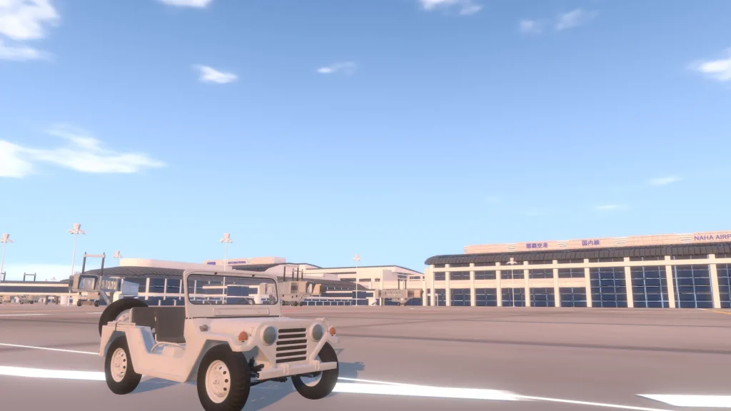 那覇空港が再現されたワールド。飛行機を飛ばせなくても、普段は入れない空港の中を車で走り回るだけでも楽しいです。(やまびこ)