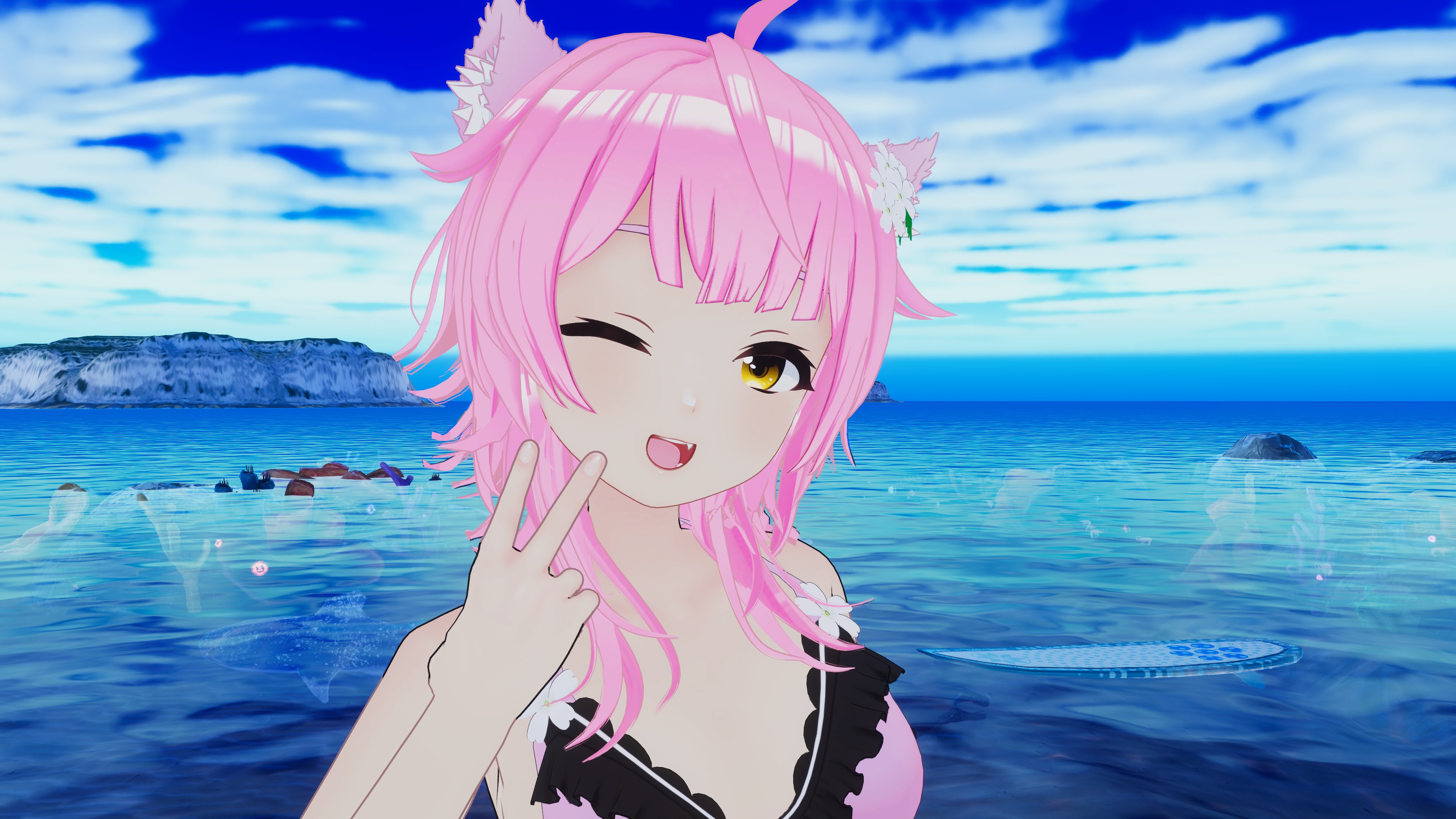 VRchatでフルトラッキング、フェイストラッキングで可愛さ抜群 モデル:みゃーちゃん(@vr_mya_) #Vtuber#VR#VRchat#VRC水着コンテスト