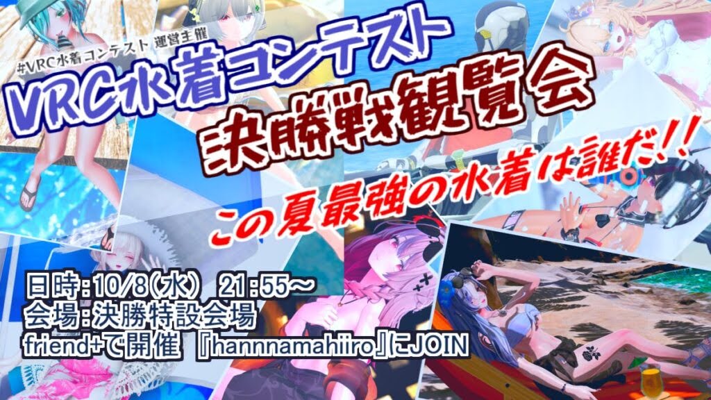 そのVRC水着コンテスト、決勝戦はVRC内で皆さんの観覧も可能になっております。この夏、VRC最強の水着が決まる瞬間を、自分の目で確かめてみませんか?