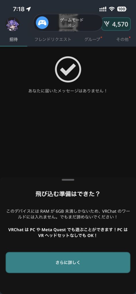 なお、RAMが規定に満たない場合もダウンロードすることが出来ますが、その場合はVRChatのバーチャル空間には入ることは出来ません。