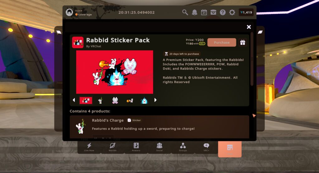 Rabbids x VRChat Bundle:4,800VC(4,320VC)