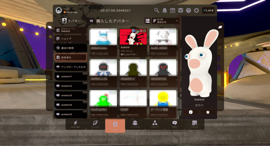 なお、アイテムではなくアバターとしての販売となるため、購入した後はアバター選択欄の『所有済み』の欄に出てくるようになります。