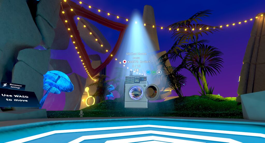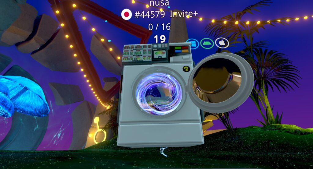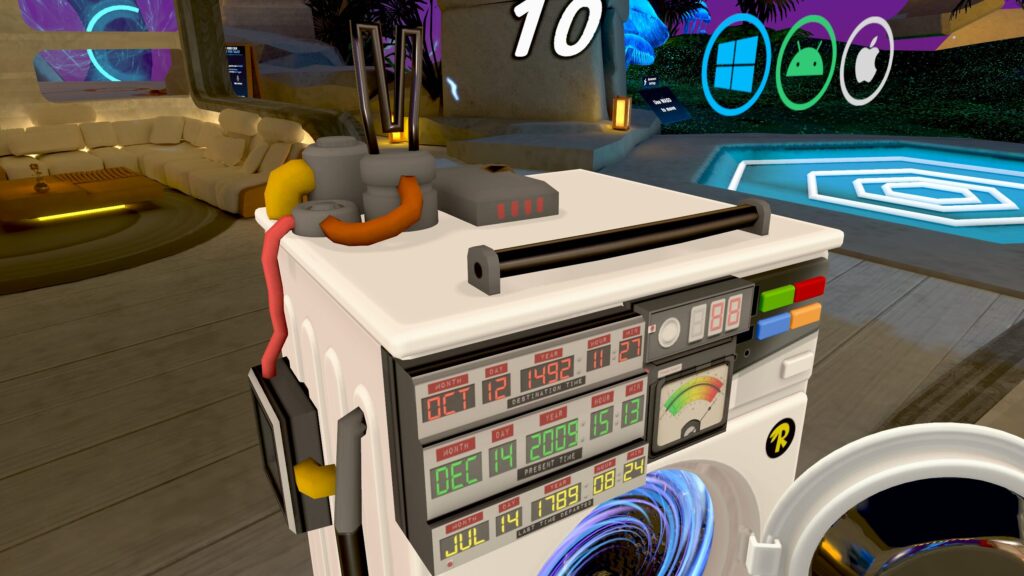 最初に紹介するのは、Rabbids達の謎技術によってできた『洗濯機型のタイムマシン』……を模したポータルです。タイムマシンらしく、時刻を設定するようなパネルが左上にありますが、未来や過去のインスタンスに行く機能は無いようです。