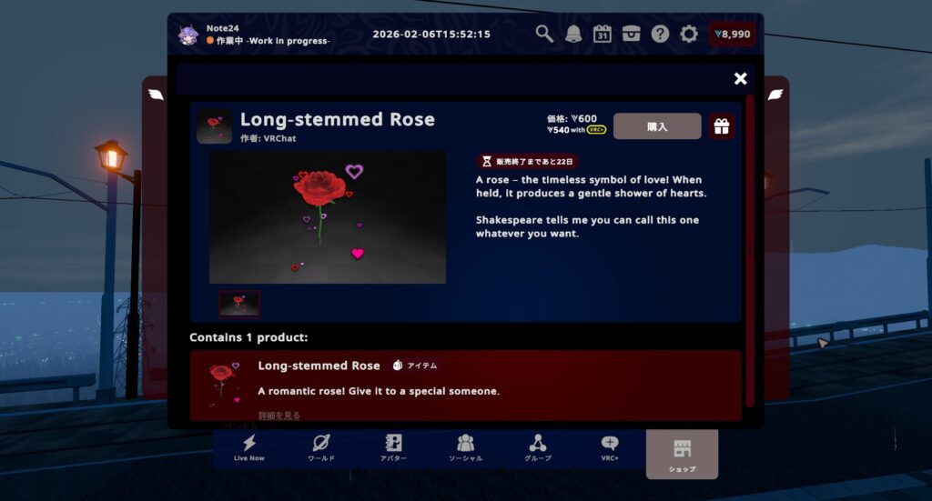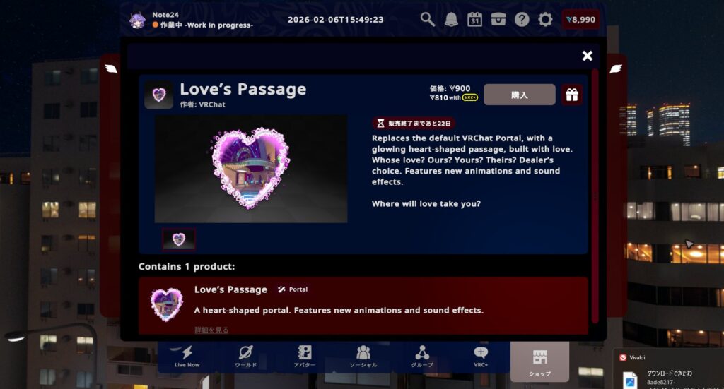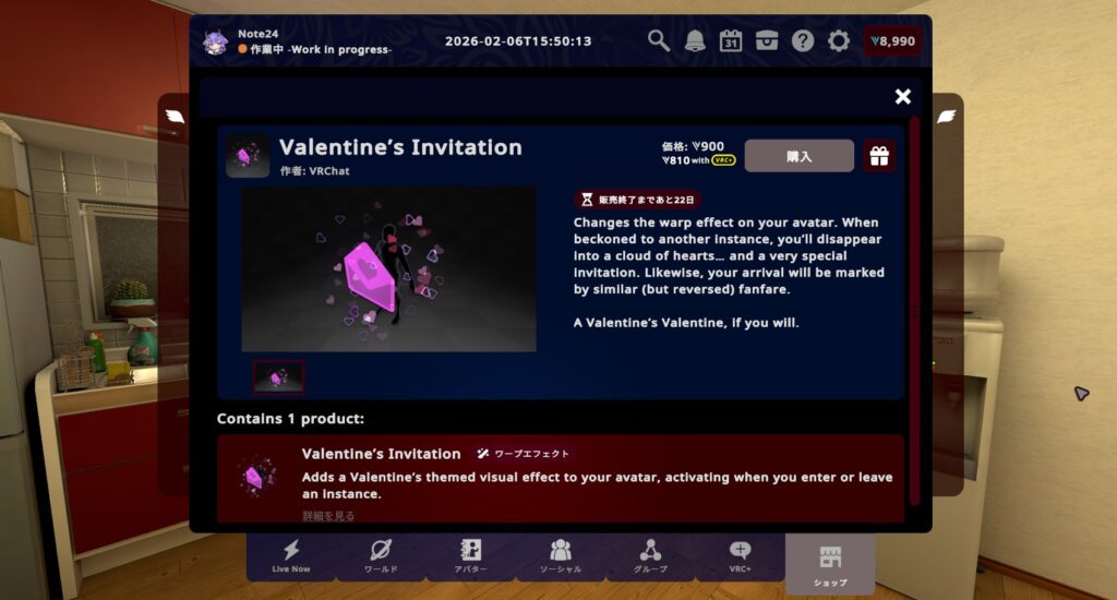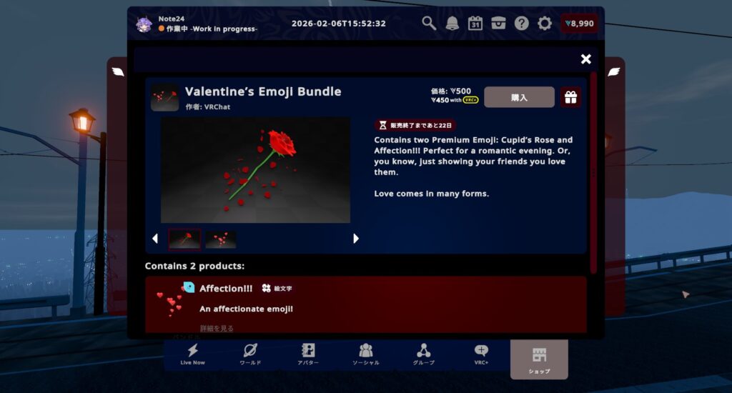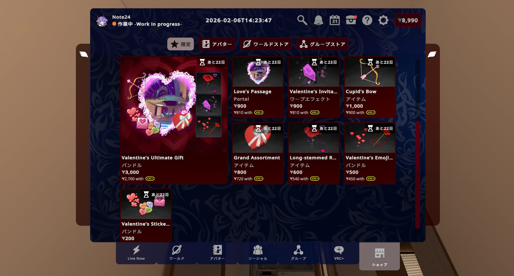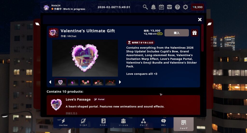個別に買って全部集めると4,900VCですが、紹介したすべてが詰まったお得なバンドル「Valentine’s Ultimate Gift」を購入すれば1,900VCお買い得に!VRC+ユーザーならさらに10%オフ!