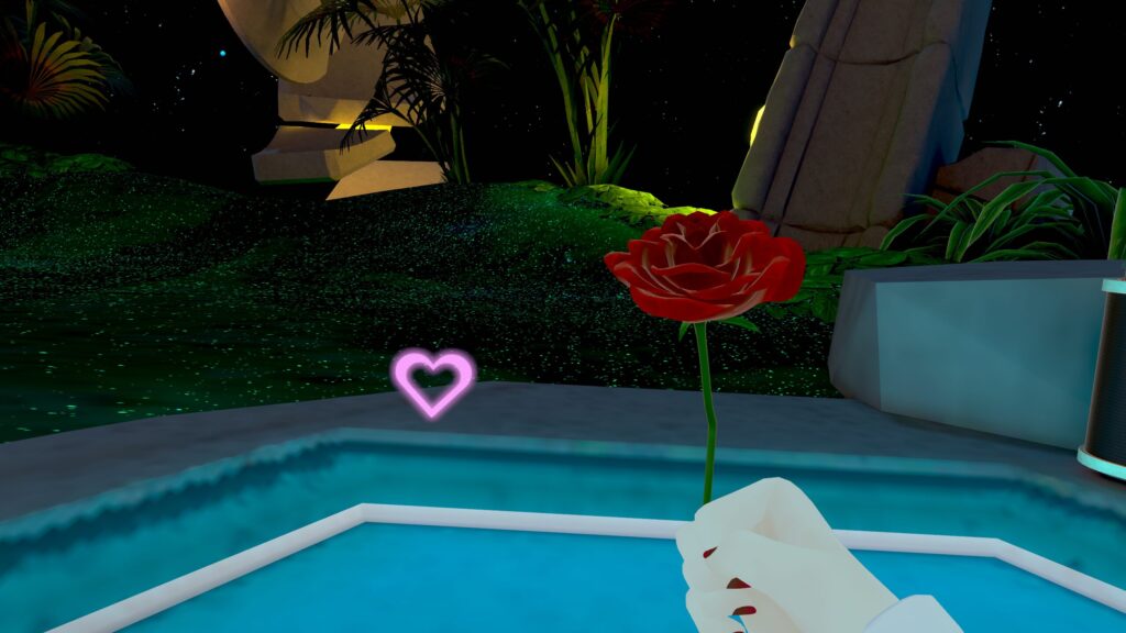 バラを手に持つと周囲にハートが出現します。