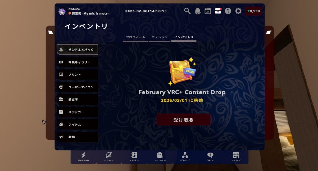 まずはじめに紹介するのは、VRC+ユーザーに2月限定で配布される「February VRC+ Content Drop」。