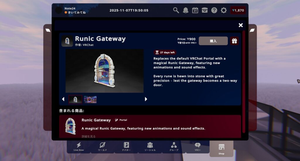 まず最初に紹介するのは「Runic Gateway」。これはポータルの見た目を変えることのできるいわゆるスキンの一種。