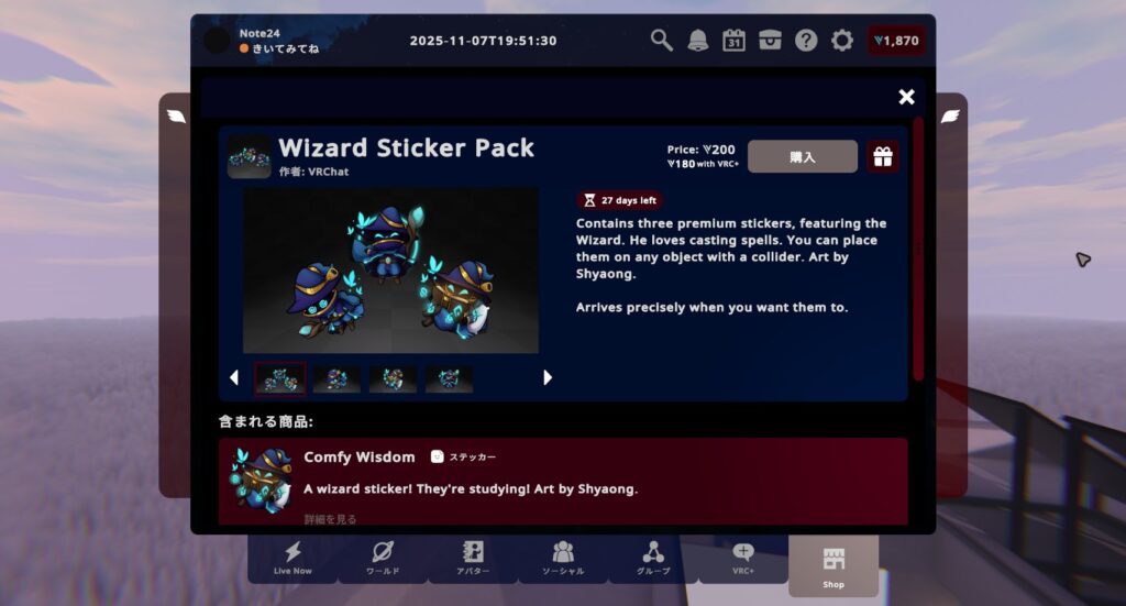 なおクレジットは、ショップ内の「グループストア」や「アバターマーケットプレイス」・「ワールドストア」での購入などにも使用することができます。(執筆時点では、VRC+には利用できません)