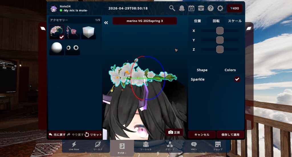この機能を使えば、Unityを使わずともアクセサリーを付けることができ、オリジナリティを出すことができるかも?