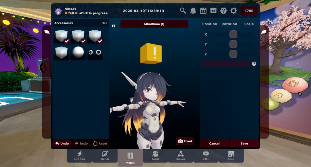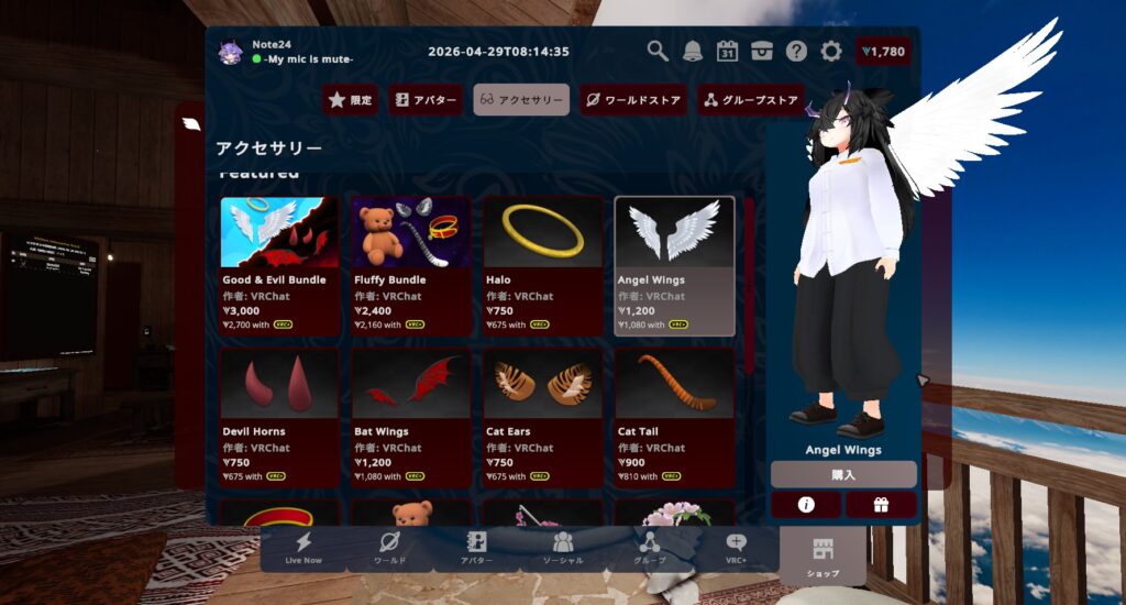 この機能は「アバターアクセサリー(Avatar Accessories)」という名の通り、アバターにアクセサリーを付けることのできる機能です。