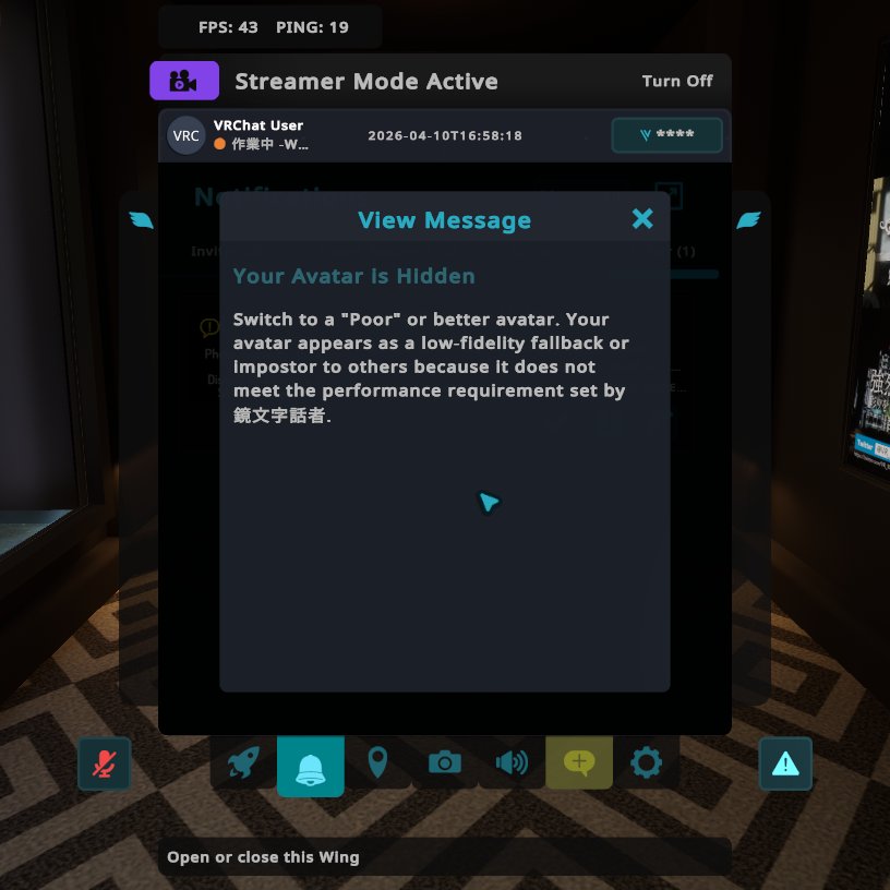 アバターパフォーマンスによるインスタンス入室制限
