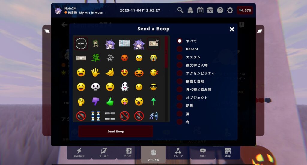 先述で紹介した機能「カスタム絵文字・写真・UIテーマ・ステッカー」を共有しよう!(受け取るにも送るにもVRC+の加入が必要です)