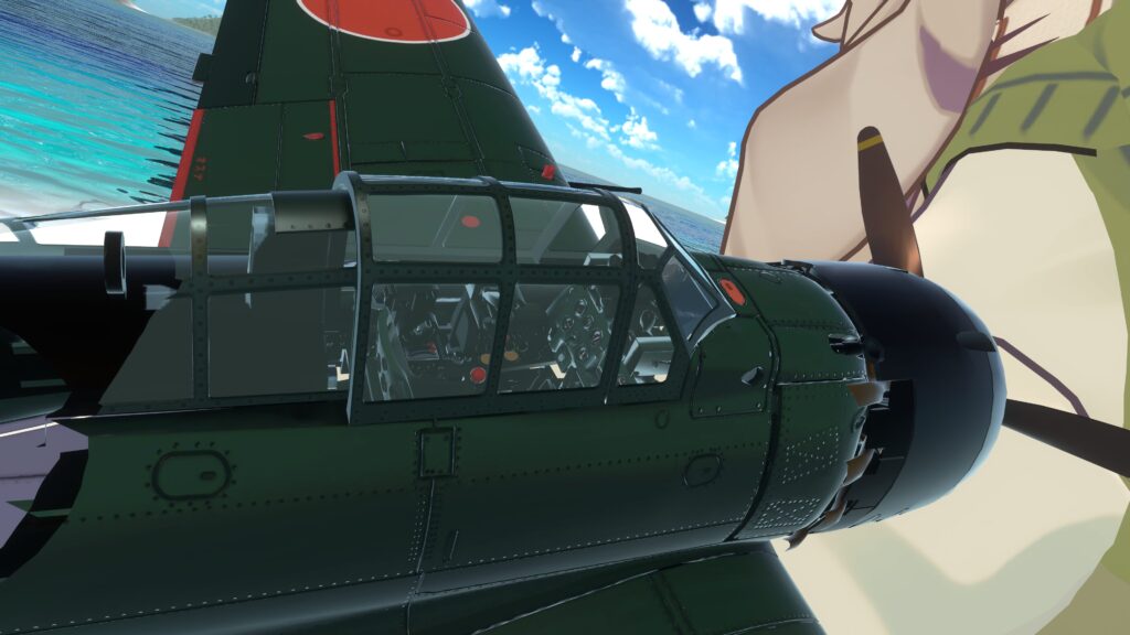 この零戦は1/32スケールのダイキャストモデルを基に製作されているということで、モデルのクオリティはピカイチ。操縦席をのぞくと操縦桿や計器まで精細に再現されています! ギミックとして使うだけでなく、ワールドへの使用も可能なので、ホームワールドに飾ったりするのもいいですね。